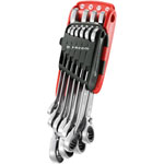 High-quality 10-piece standard combination ratchet wrench set from Facom suitable for tackling a variety of tightening and untightening tasks. These ultra-compact tools are supplied in a handy portable case.