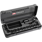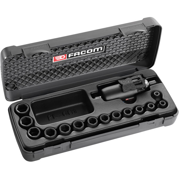 This 15-piece impact wrench from Facom is a very compact set which is ideal when working in confined areas. Manufactured to a high standard and comes supplied in a protective case which can be used for mobile uses, while the set itself features 3/8in impact sockets (6-19mm), square drive and 4 torque settings.