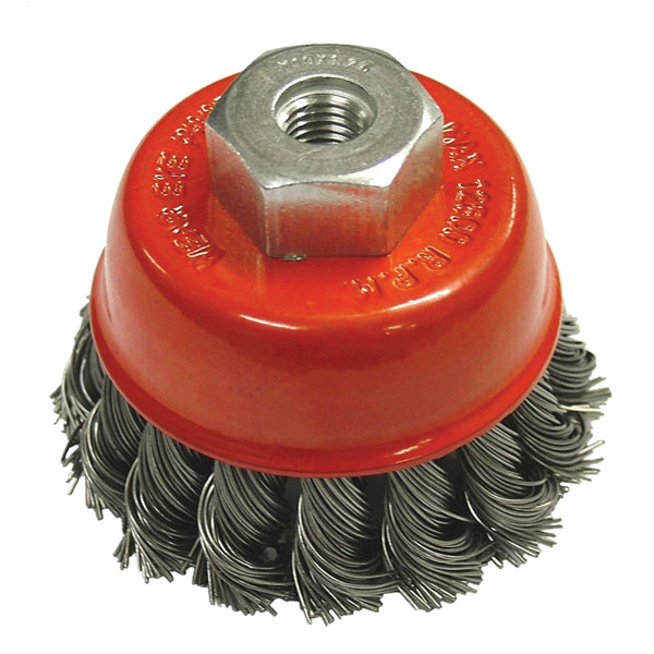 Faithfull Twist Knot Wire Cup Brush for heavier duty applications such as the removal of slag, rust, scale or even dried concrete.Designed for use with a compatible thread angle grinder.