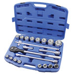 16 x Metric Hexagon Sockets: 19, 21, 22, 23, 24, 26, 27, 29, 30, 32, 35, 36, 38, 41, 46 and 50mm.