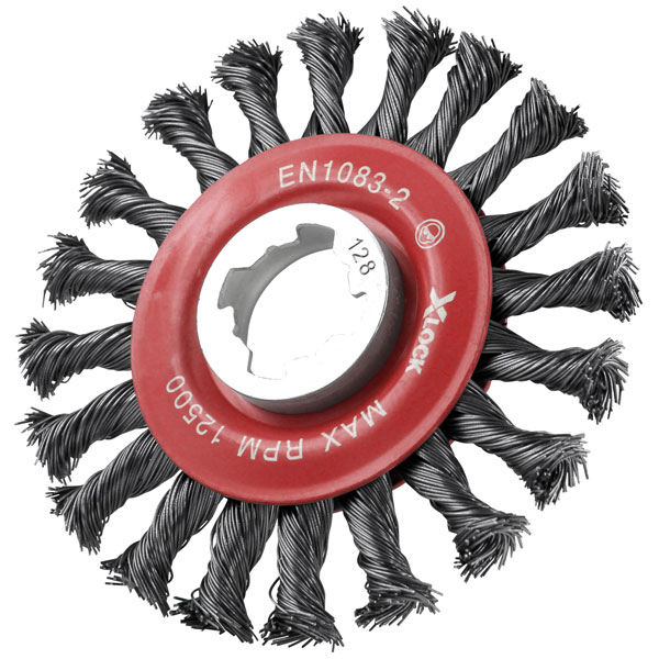 Faithfull X-LOCK Conical Wire Brush is used for heavy-duty applications. Twist knot brushes are suitable for the removal of slag, rust, scale or even dried cement from welds, edges and grooves. For use on steel surfaces, aluminium and non-ferrous metal surfaces.