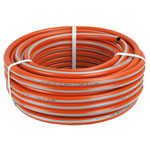 The hose is compatible with all 12.5 to 15mm fittings and has a working pressure of 10 bar with a temperature range of -15 to +60°C. The bright orange colour and grey stripe make this hose easy to spot in the garden.