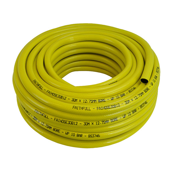 The hose is compatible with all 12.5 to 15mm or 19mm fittings depending on the bore size selected. The hose has a working pressure of 10 bar with a temperature range of -15 to +60°C. The bright yellow colour make this hose easy to spot on the worksite.