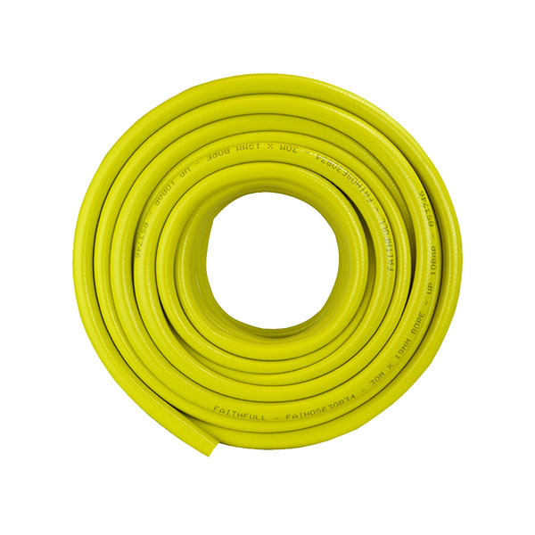 The hose is compatible with all 12.5 to 15mm or 19mm fittings depending on the bore size selected. The hose has a working pressure of 10 bar with a temperature range of -15 to +60°C. The bright yellow colour make this hose easy to spot on the worksite.