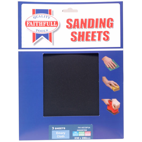 Faithfull FAIAECSP3A Alox Cloth Sheets 230 x 280mm Assorted (3)