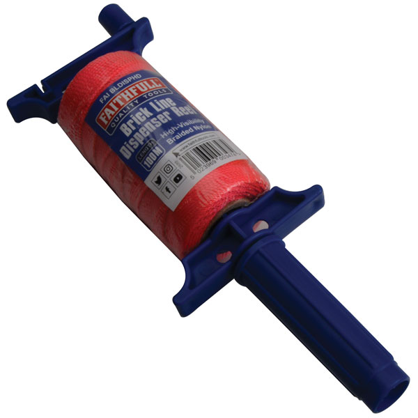 The Faithfull Brick Line Dispenser Reel comes with 100m of strong, hi-vis braided nylon building line. The handle is made from durable polyethylene with a free-spinning top section that allows the line to be quickly rewound. The spool can be easily changed and replacement lines are sold separately.