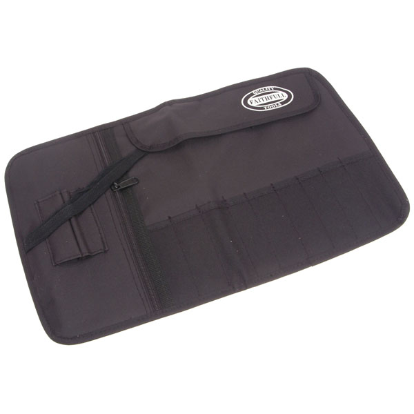 Contains pockets for various sizes of drill bits and a zip-up compartment for storing small tools or paperwork. Three elastic loops are provided for secure pen or pencil storage.