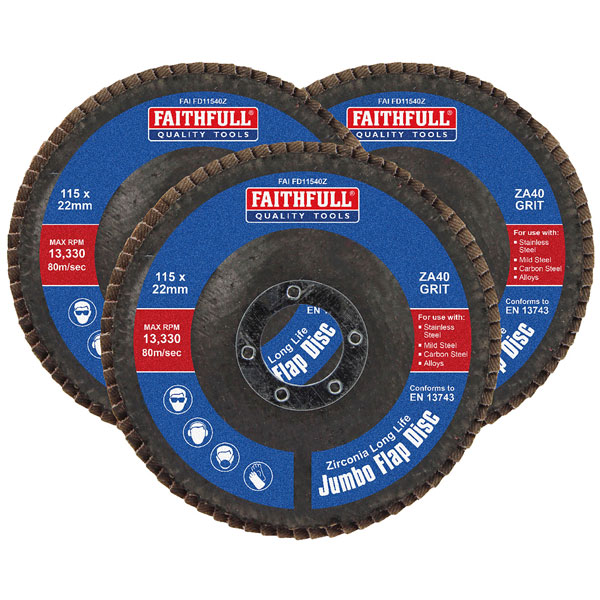Faithfull FAIFD11540Z3 Zirconia Abrasive Jumbo Flap Disc 115 x 22mm 40 Grit 3Pk