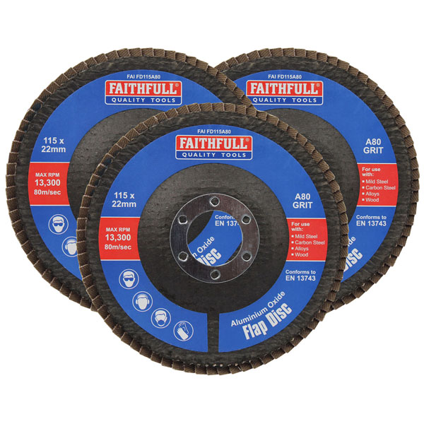 Faithfull FAIFD11580A3 Aluminium Oxide Flap Disc 115 x 22mm 80 Grit (3 Pack)