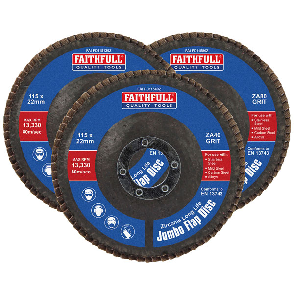 Faithfull FAIFD115ZM3 Zirconia Abrasive Jumbo Flap Disc 115x22mm Mixed Grit 3Pk