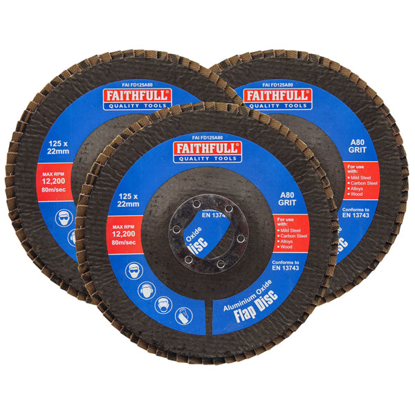 The Faithfull Aluminium Oxide Flap Discs are suitable for heavy-duty applications. The 72 flaps enables fast stock removal with minimal risk of damage through gouging or discolouration. A lightweight disc design reduces operator fatigue, and is easier to control, providing better quality and consistency of your surface finish. The layered disc is cooler, and quieter than typical grinding/abrasive discs, with less vibration and reduced glazing.