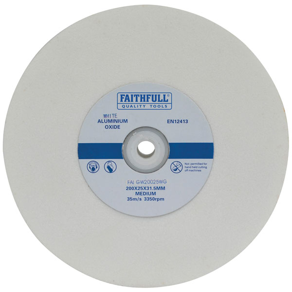 The Faithfull FAIGW20025WG is a 200mm x 25mm vitrified grinding wheel suitable for use on most types of bench grinders. The general purpose grinding wheel can also be used for normal grinding of ferrous metals.