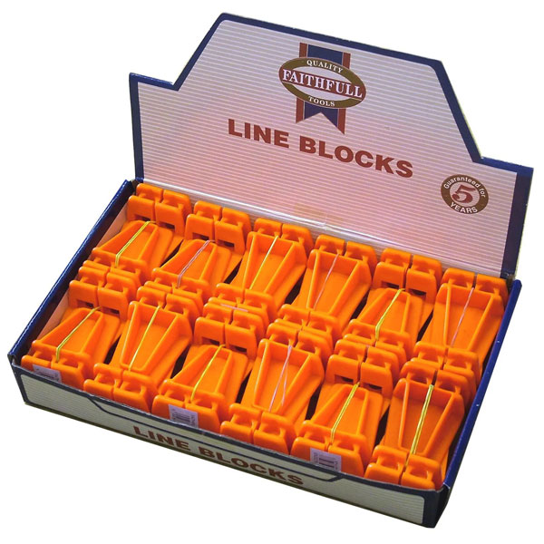 These Robust L shaped plastic blocks are a simple tool, which can be quickly adjusted under tension for length and height, to ensure that courses of bricks are running straight and true.