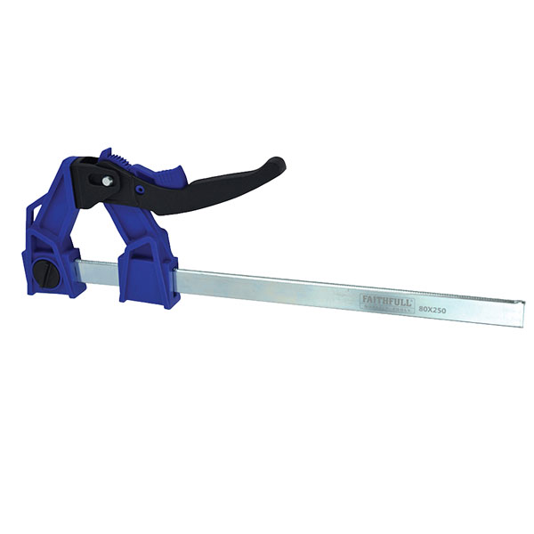 The Faithfull Heavy-Duty Lever Clamp with 120kg of gripping force and a heavy-duty ABS plastic and high-tensile steel bar. Tool-free head release allows the clamp to be quickly turned into a spreader, with a lever operation for speed of clamping or spreading. Dual-handed fast operation.