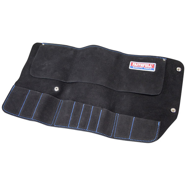 This Faithfull Tool Roll is manufactured from high quality leather. It has ten pockets of various sizes, ideal for storing small tools such as chisels, auger bits, screwdrivers, spanners and other associated items. Uses a stud fastening system for ease of use.