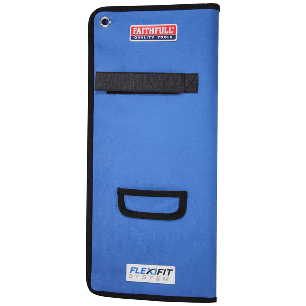 The Faithfull Flexi Trowel Range Tool Roll is designed to protect your Faithfull Flexi Trowels whilst moving between jobs. This convenient roll can fit three Flexi Fit Blades (up to 400mm/16in). It can be rolled up to fit inside a bucket and features two convenient corner eyelets so it can be hung, for easy access to your kit.