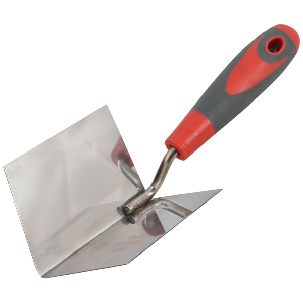 Faithfull Internal corner trowel for finishing internal angles. This trowel has a flexible one piece stainless steel blade set at the correct angle to create a perfect 90° corner. Fitted with a full size soft grip handle for user comfort.