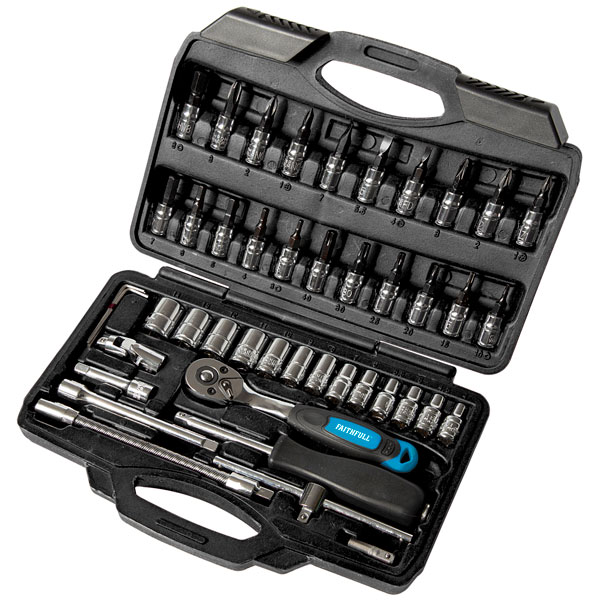 Faithfull presents the FAISOC1446MQ 1/4in socket set, a comprehensive 46 piece collection designed for versatility and efficiency.