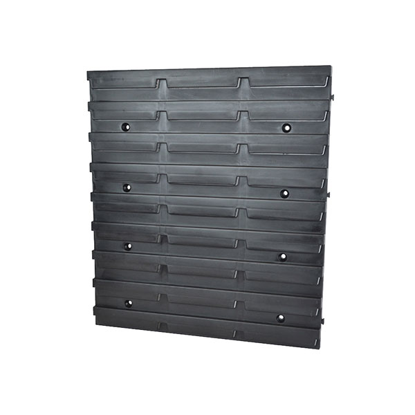 Plastic slatted wall panel allowing various combinations of Faithfull Interlocking storage bins and parts boxes to be wall mounted. Ideal for use in both professional workshops or for home storage.