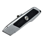 The die-cast metal body has an interlocking nose design to stop any sideways blade movement, a soft grip section for comfort and a hole for attaching to a lanyard. No tools are required for blade replacement, a wing screw on the side of the knife enables easy opening. Accepts standard heavy-duty trimming knife blades.