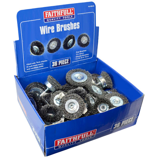 Faithfull FAIWBA36 Wire Brush Assortment 36 Piece offers a versatile selection of wire brushes for cleaning and rust removal.