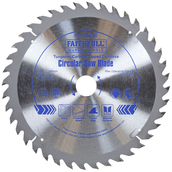 Faithfull FAIZ1654020C TCT Cordless Trimsaw Blade 165 x 20mm x 40T POS
