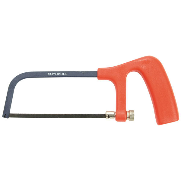 The Faithfull Mini Saw heavier version of the junior hacksaw with an epoxy coated steel frame and moulded pistol-grip handle which incorporates the blade tensioning nut, supplied with a hardened and tempered blade which is ideal for small cutting jobs in metal and wood.