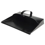 A sturdy metal dustpan with a hooded design that is ideal for collecting dust and helps retain dirt and debris until ready to be emptied.