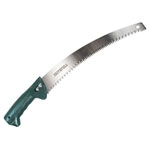 The Faithfull Countryman Curved pruning saw features a top quality SK5 steel blade that provides a clean cut for a long working life. Triple-ground and hardened teeth cut on both push and pull stroke. It can be used as a hand saw or pole saw and is perfect for pruning live trees and shrubs. The comfortable moulded Polypropylene plastic handle has a hollow end that will accommodate a standard 23mm (15/16in) diameter broom handle when extra long reach is required.
