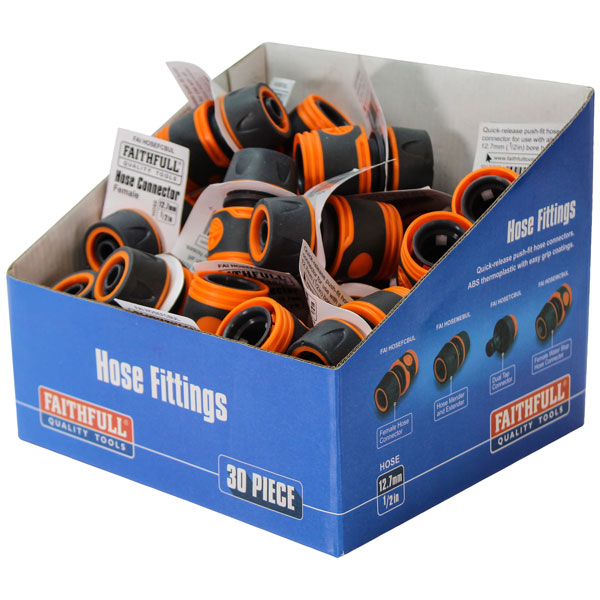 1 x Display Box of 30 Faithfull Plastic Female Hose Connectors.