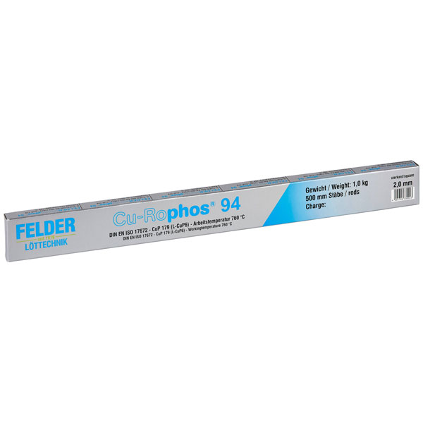 The Felder 330120501 solder stick is a high-quality soldering product, featuring a 1 kg weight and 2 mm thickness, ideal for various welding applications. Manufactured by Felder, this solder consists of CuP 179 alloy composition, ensuring reliable electrical and mechanical connections. It is commonly used in plumbing and HVAC systems for joining copper pipes and fittings.