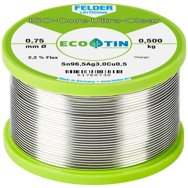 Felder 51760730 ISO-Core Ultra Clear SAC305 Solder Reel 0.75mm 0.5kg