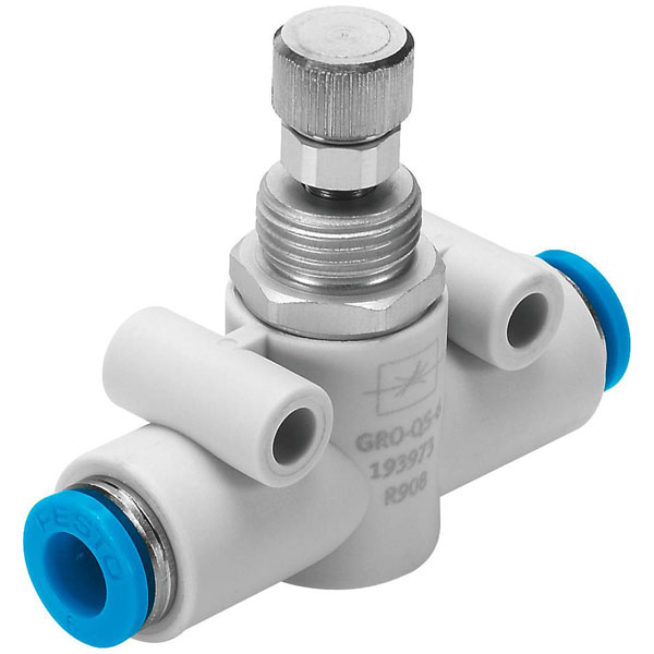 Festo manufactures the GRO-QS-6 choke, which operates up to 10 bar pressure. It is designed for precise airflow control in pneumatic systems. Typical applications include use in automation and industrial machinery for regulating air flow.