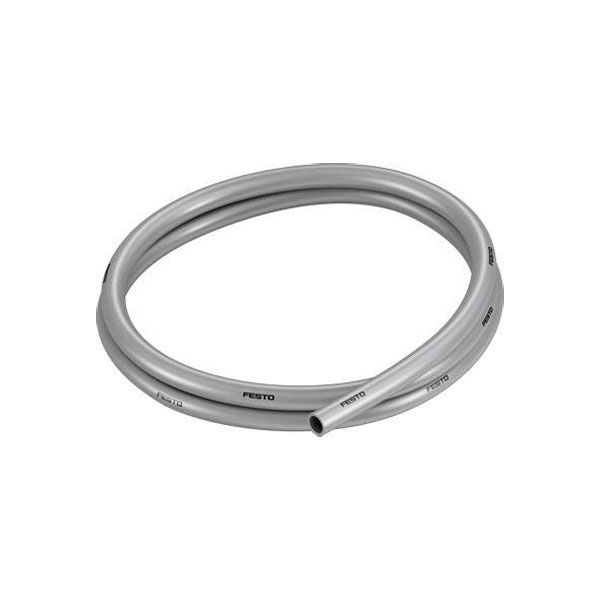 The FESTO air hose 558281-50 is a thermoplastic elastomer hose with a silver finish and an inside diameter of 7 mm, suitable for pneumatic applications. It can handle pressures up to 10 bar and has a length of 50 metres, offering flexibility and durability for various industrial uses. This high-quality hose is ideal for transporting air in automation and control systems.