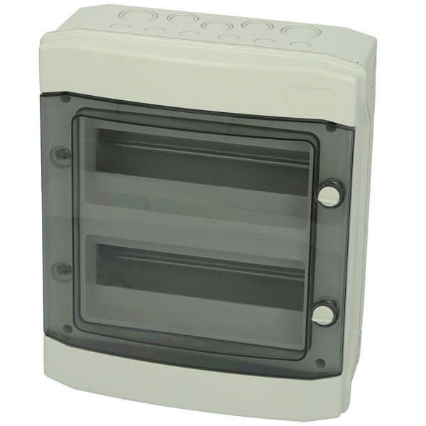 Fibox 7350005 MCE65 Surface mounting enclosure for 24 modules with transparent door and 2 rows. This strong, light weight modular component enclosure is ideal for quick assembly and access.