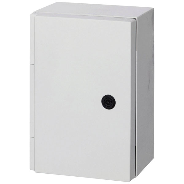 The Fibox CAB P 806030 is a polyester wall-mount enclosure measuring 835 x 635 x 300 mm in grey-white (RAL 7035). It features a double bit lock and is ideal for use as a protective cabinet for electronic or electrical components. This enclosure is commonly used in industrial and commercial settings for housing sensitive equipment.