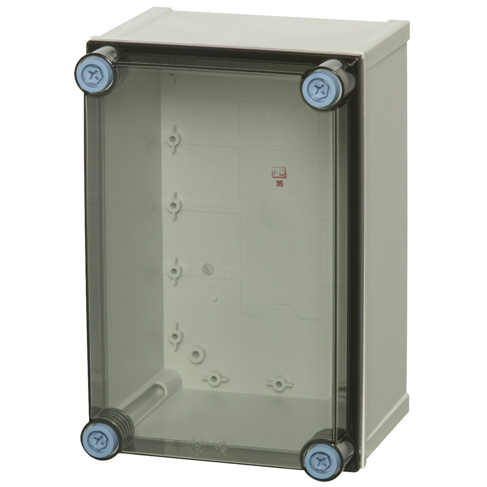 A Fibox 8113038 general purpose enclosure made from polycarbonate in RAL7035 grey that measures 300 x 200 x 170mm. Supplied complete with PUR gasket, cover screws, screws for mounting plate/DIN rail, and internal corner plugs.