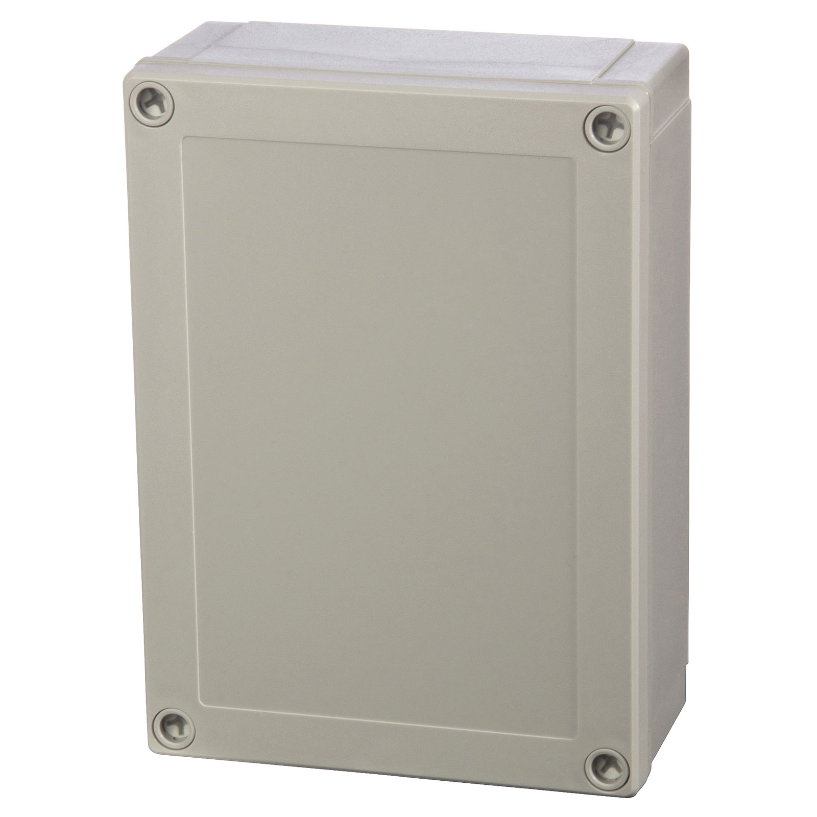 A grey enclosure and cover from the Fibox MNX series, measuring 180 x 130 x 60mm and supplied complete with PUR gasket, screws for mounting plate/DIN rail and cover with polyamide cover screws.