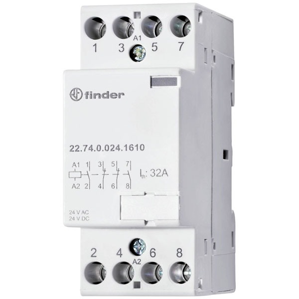 Finder 22.74.0.024.1310 contactor 4-pole 24V DC/AC 32A high-temp stable