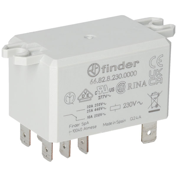The Finder 230V Relay DPST-NO DC 30A (Flange Mounting) 66.82 is from the Finder range of flange mounting relays.