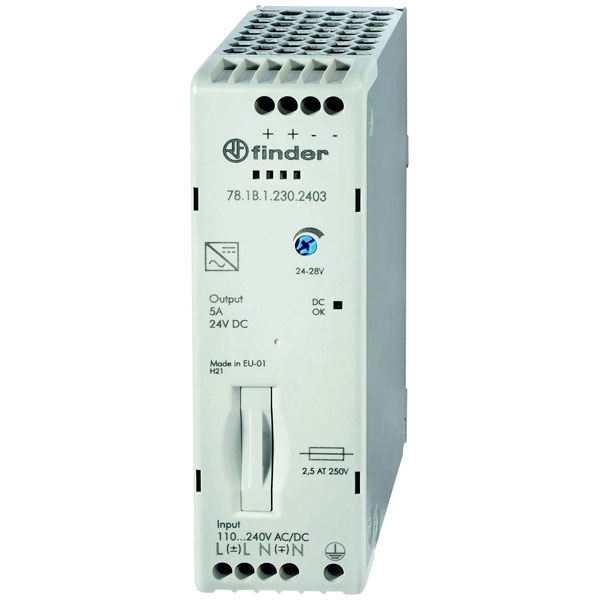 Finder 78.1B.1.230.2403 Rail PSU 24V DC 5A 110W adjustable voltage 24-28V DC