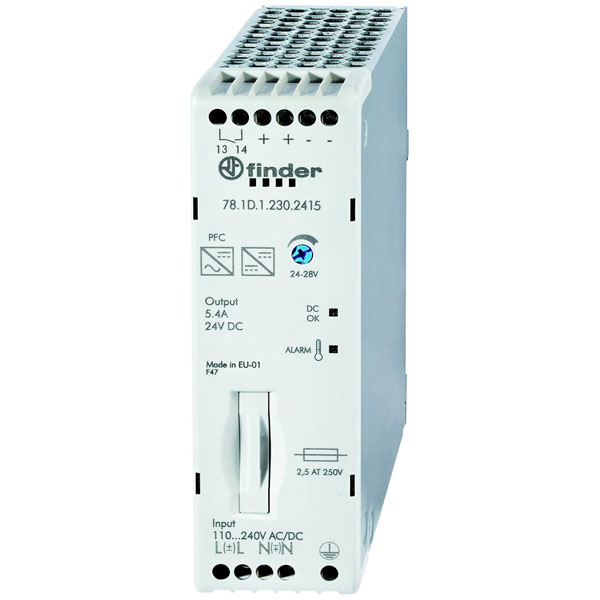 Finder 78.1D.1.230.2415 Rail PSU 24V DC 5.4A 130W DIN mount adjustable output