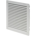 A 204 x 204mm fan exhaust outlet consisting of a louvred plastic frame with a replaceable filter mat. It is designed to be used with an equivalently-sized ventilation fan, to provide an outlet for air blown into an equipment cabinet.