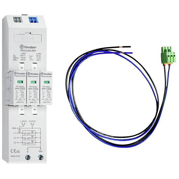 Finder 7P.04.8.255.Z007C08 Surge arrester 7.5 kA type 1+2 40 mm busbar