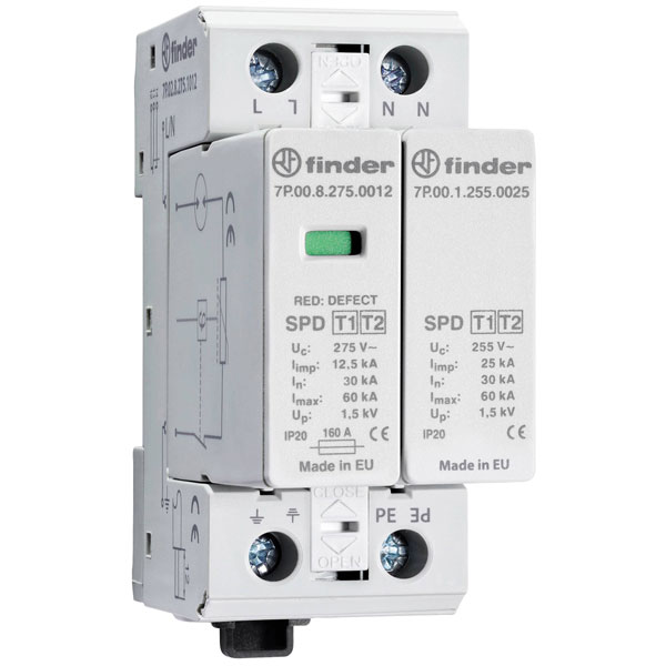 Finder 7P.04.8.255.Z012 Surge arrester 20 kA 5-conductor 12.5 kA/pole