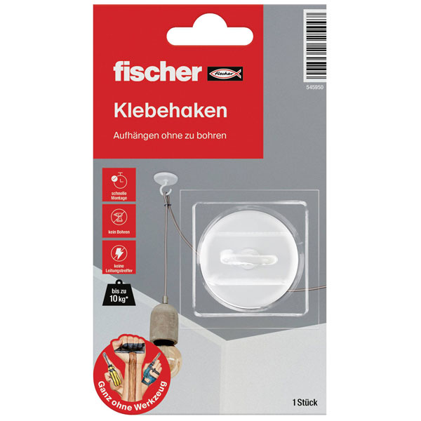 Fischer 545950 adhesive hook 1pc stick-on for safe drill-free hanging