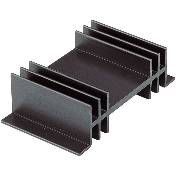A black anodised extruded heatsink suitable for use with TO-3 and CB drilling pattern devices. A base thickness of 4mm, thermal resistance of 5°C/W and low weight make the heatsink ideal for a wide range of applications.