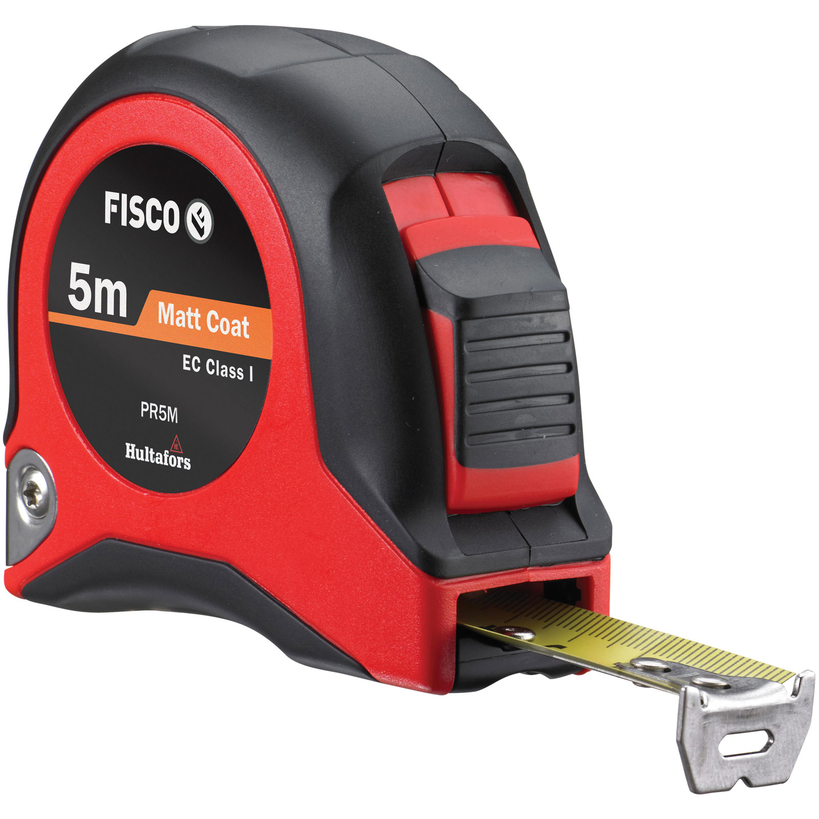 The Fisco PR Tape Measure has a tough design with an ergonomic grip, a rubber coated button and brake pad area. The high impact case is made of ABS plastic and the yellow, wear-resistant steel blade features graduations that have been printed with a highly accurate inkjet print, blade accurate to EC Class I.