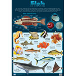 A wall chart with illustrations of various types of fish, together with anatomical information and other facts.