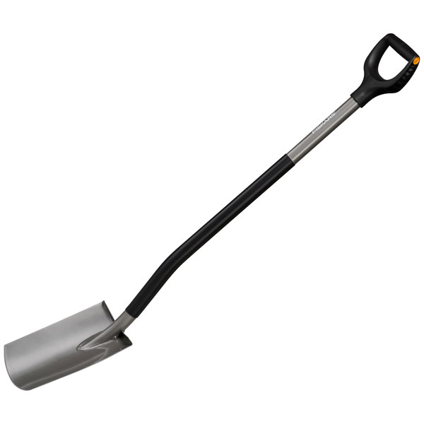 The Fiskars Ergonomic™ Rounded Spade has been optimized for comfort, working with your body to reduce strain and improve performance. Its boron steel head with stepping board adds extra strength and makes driving into tough soil easier. The sharp cutting edge is ideal for digging, edging and planting in standard, grassy topsoil